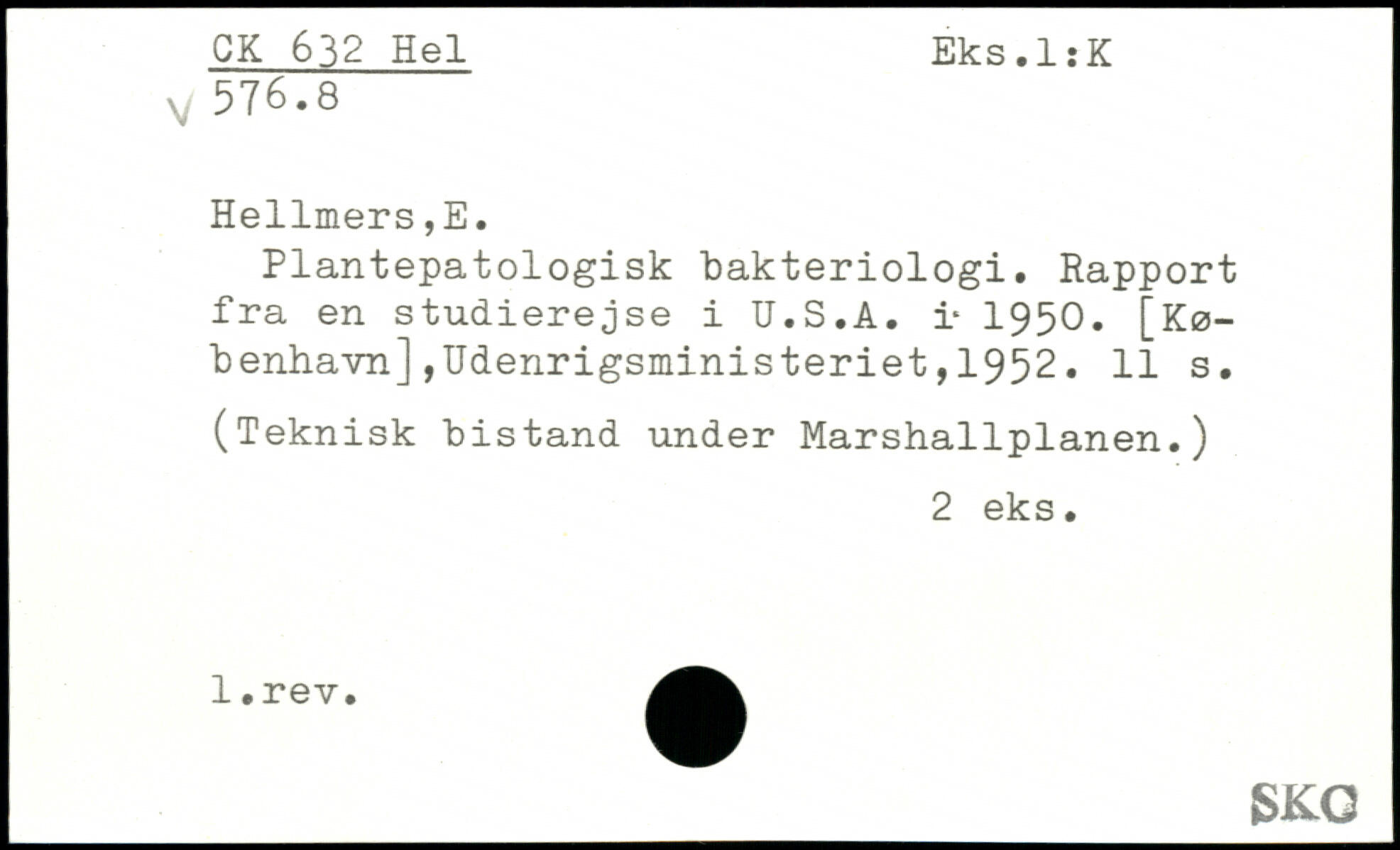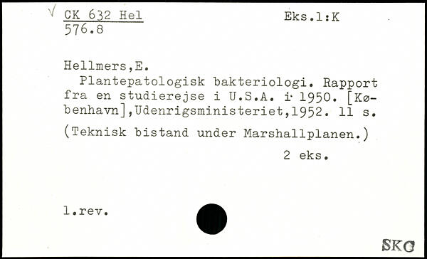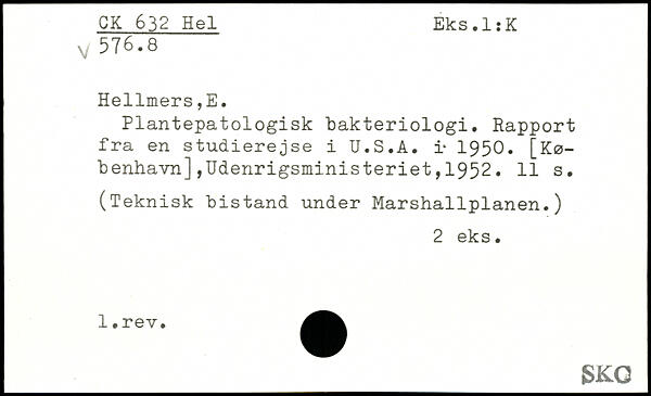 Plantepatologisk ‘bakteriologi. Rapport fra en studierejse i U.S.A. i‘ 1950. [København] ,Udenrigsministeriet,1952.