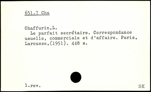 Le parfait secrétaire. Correspondance usuelle, commerciale et d'affaire. Paris, Larousse,(1951).