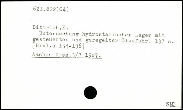 Untersuchung hydrostatischer Lager mit gesteuerter und geregelter Ölzufuhr.