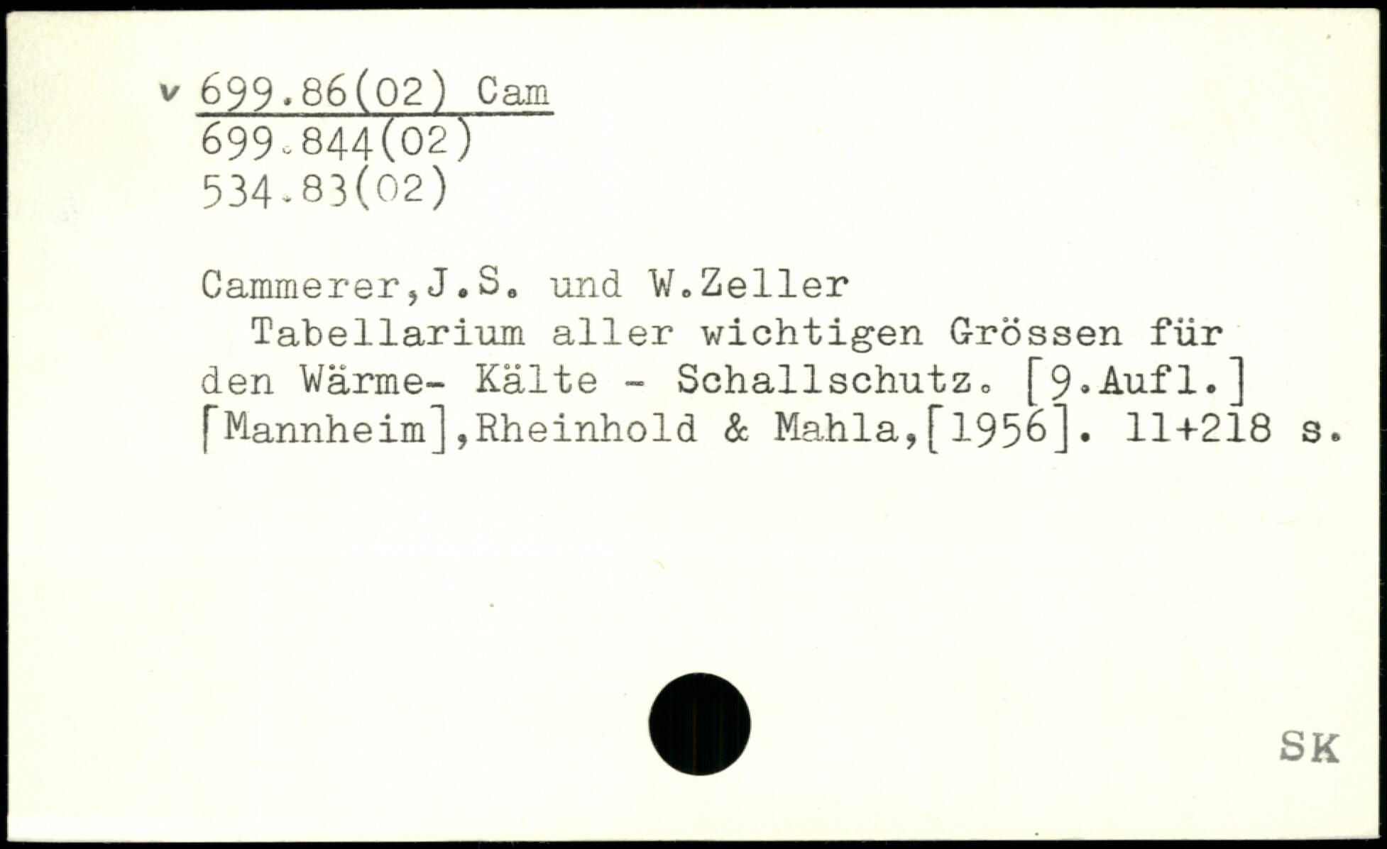 Tabellarium aller wichtigen Grössen für den Wärme- Kälte - Schallschutz, [