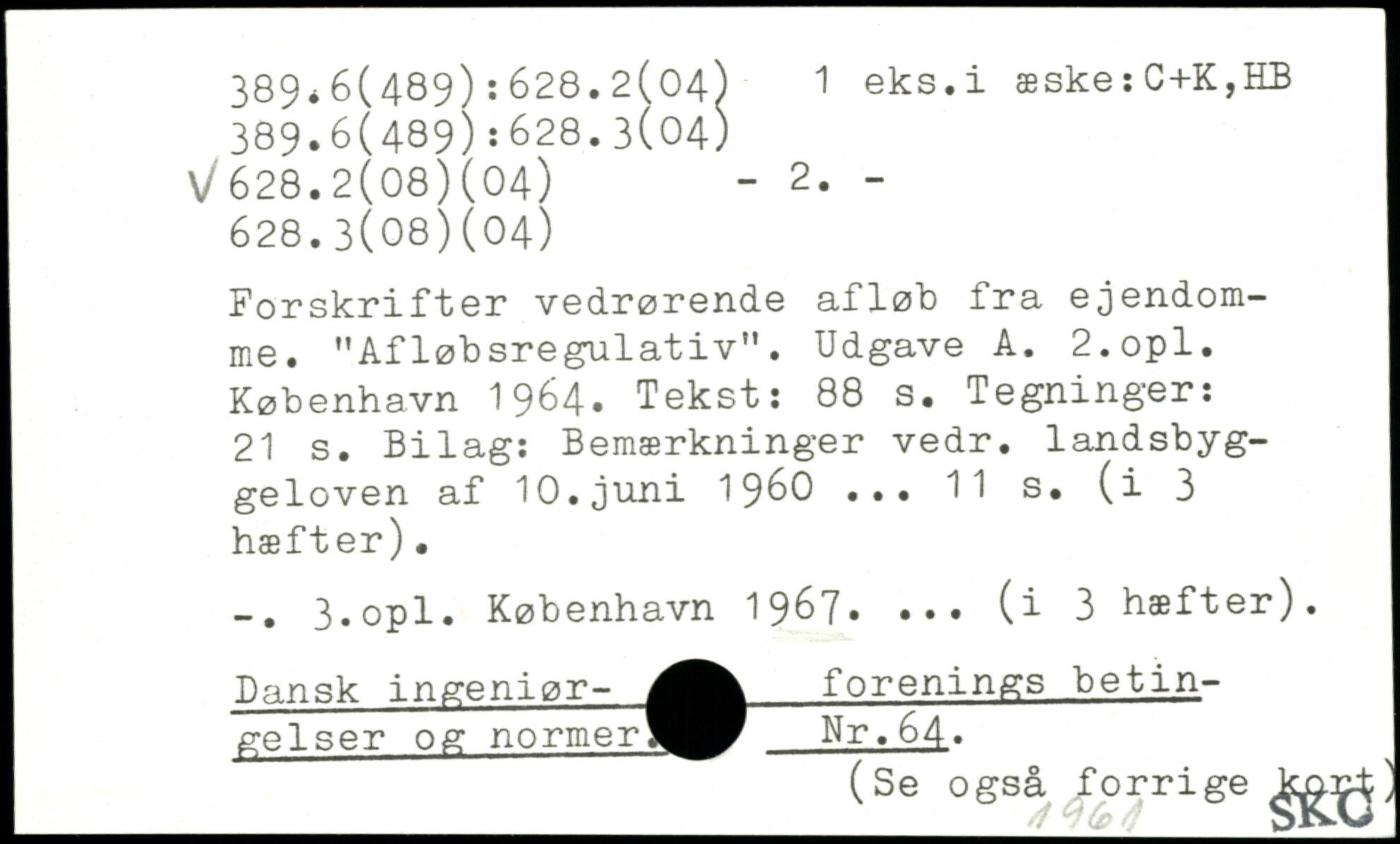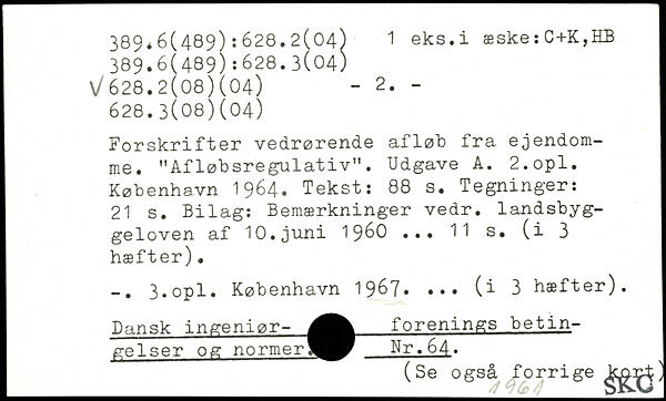Forskrifter vedrørende afløb fra ejendomme. "Afløbsregulativ". Udgave A. 2.opl.
