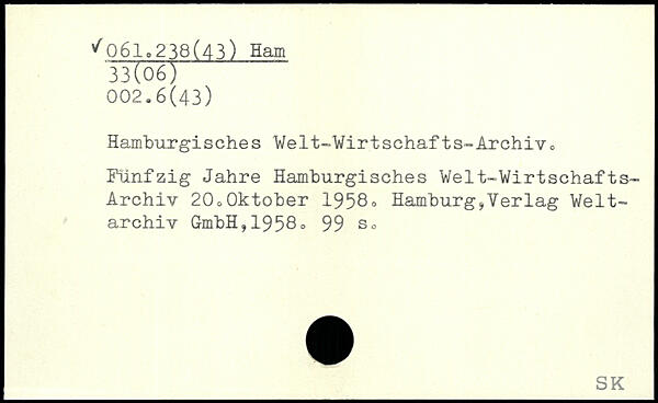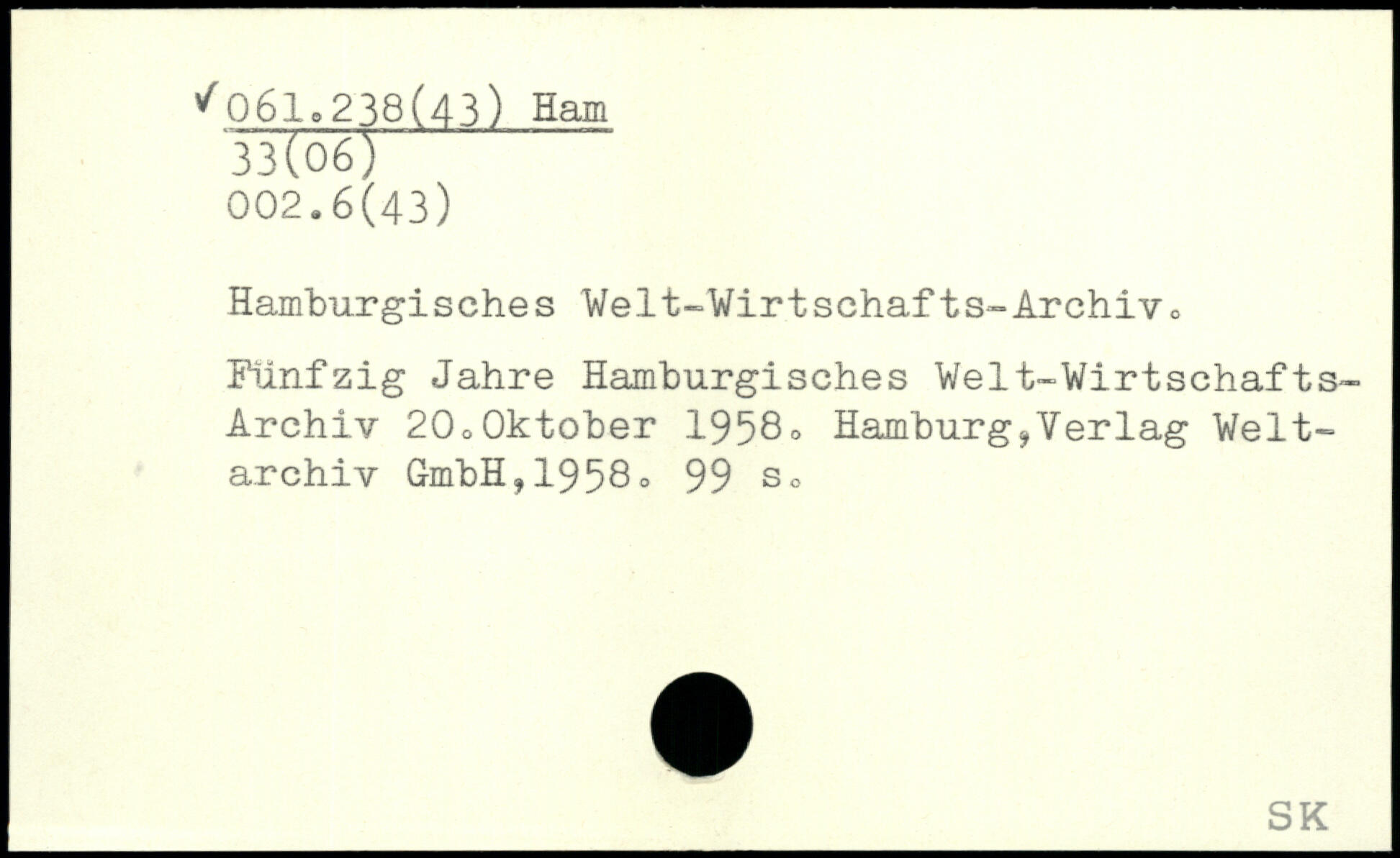 Hamburgisches ¥elt-Wirtschafts-Archiv. Fünfzig Jahre Hamburgisches Welt-Wirtschafts-Archiv 20oOktober 1958