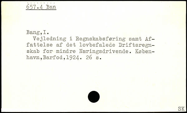 Vejledning i Regnskabsføring samt Affattelse af det lovbefalede Driftsregnskab for mindre Næringsdrivende.