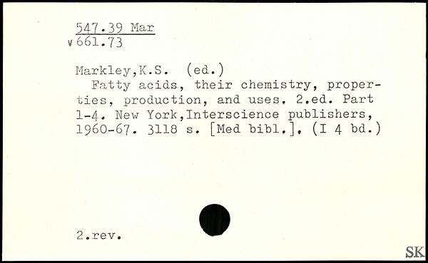 Fatty acids, their chemistry, properties, production, and uses, 2,ed. Part 1-4.