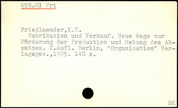 Fabrikation und Verkauf. Neue Wege zur Förderung der Produktion und Hebung des Absatzes. 2,Aufl. Berlin, f!Organisation” Ver-lagsges.,1925.