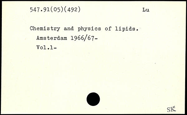 Chemistry and physics of lipids. Amsterdam 1966/67-Vol.l-