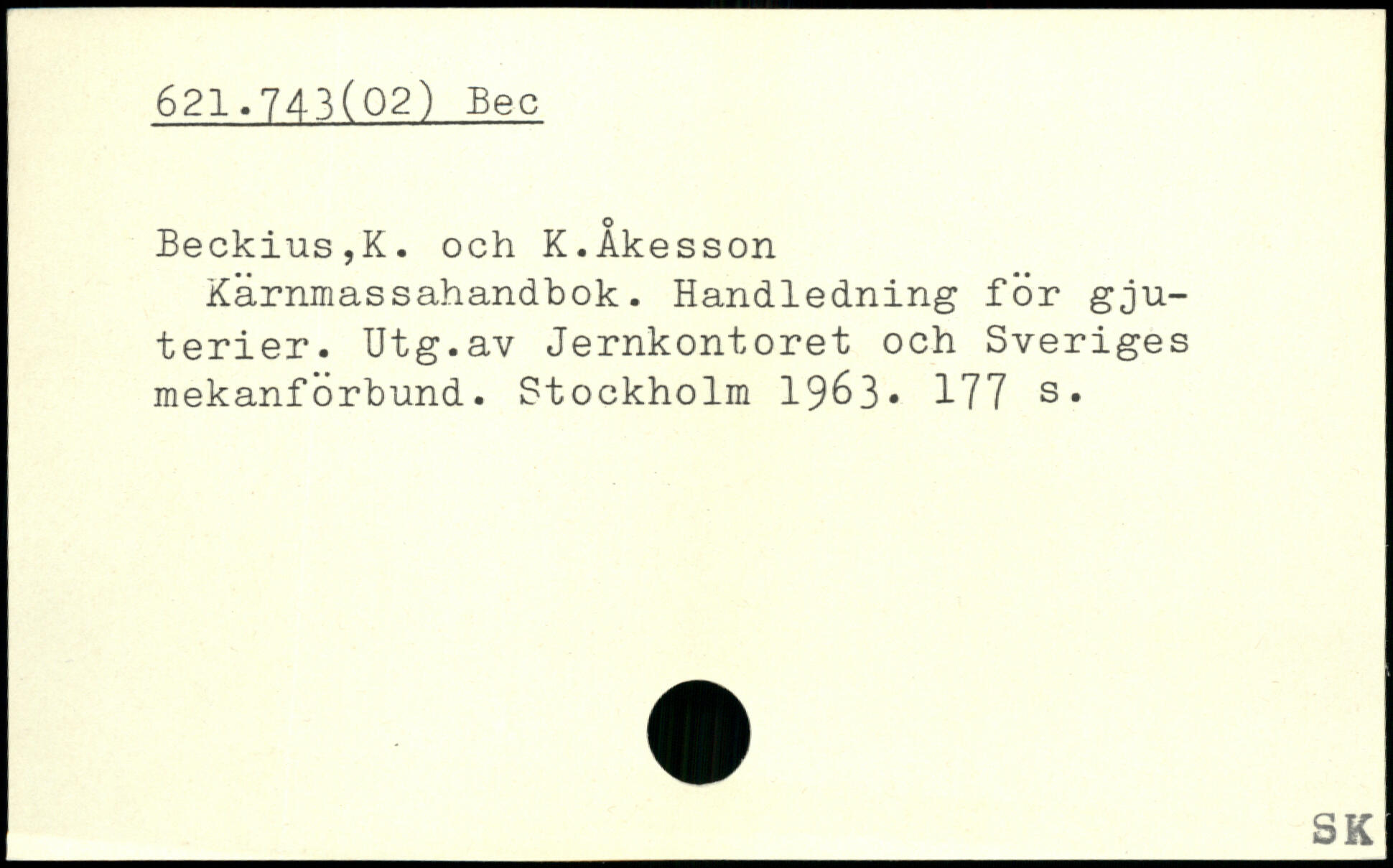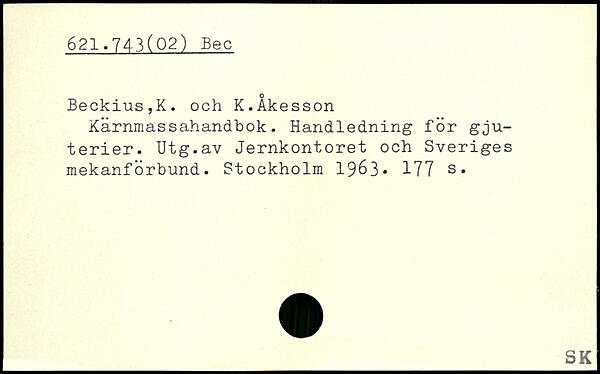 Kärnmassahandbok. Handledning för gju-terier. Utg.av Jernkontoret och Sveriges mekanförbund.