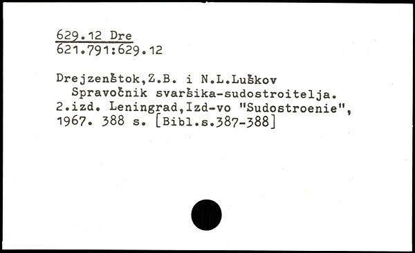 Drejzenfetok,Z.B. i N.L.Lu&kov SpravoSnik svarèika-sudostroitelja. 2.izd. Leningrad,Izd-vo "Sudostroenie", 1967.