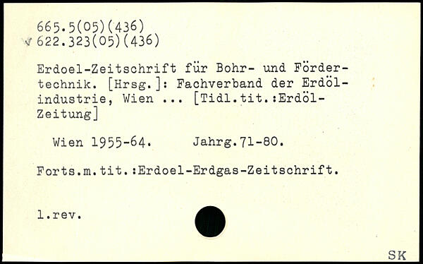 Erdoel-Zeitschrift für Bohr- und Fördertechnik. [Hrsg.]: Fachverband der Erdölindustrie, Wien ... [Tidl.tit.,Erdöl-Zeitung]
