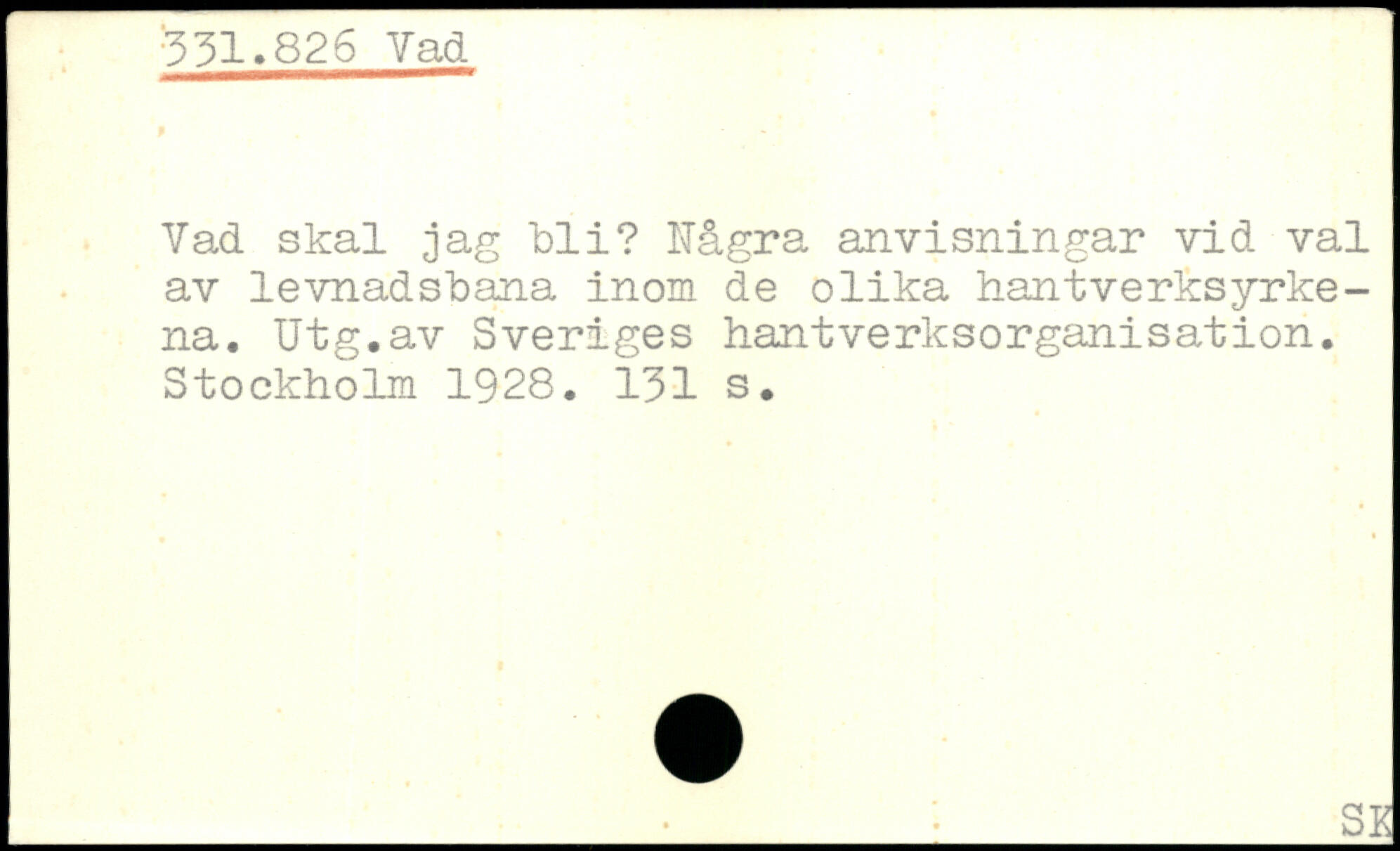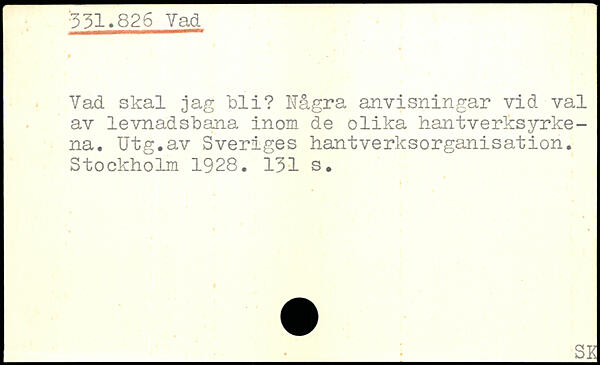 Vad skal jag bli? Några anvisningar vid val av levnadsbana inom de olika hantverksyrkena. Utg.av Sveriges hantverksorganisation.