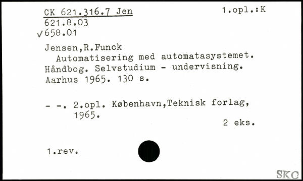 Automatisering med automatasystemet. Håndbog. Selvstudium — undervisning. Aarhus 19^5