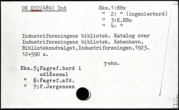 CK Eks. 1: HBx M 2: n (ingeniørbord) " 3:K,HBx Industriforeningens bibliotek. Katalog over Industriforeningens bibliotek.