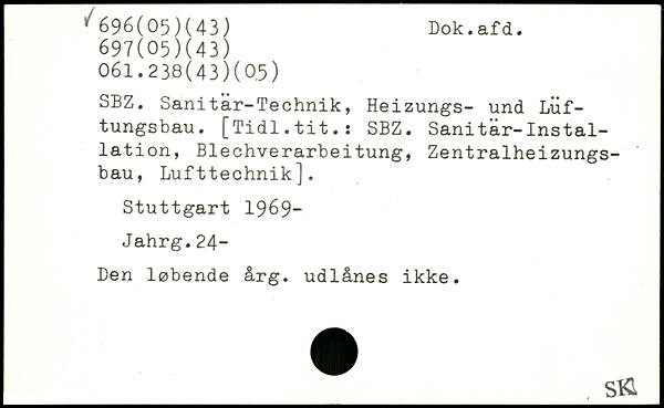 SBZ. Sanitar-Technik, Heizungs- und Luf-tungsbau. [Tidl.tit.î SBZ. Sanitar-Installation, Blechverarbeitung, Zentralheizungs-bau, Lufttechnik].