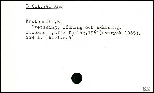 Svetsning, lödning och skärning. Stockholm,LT's förlag,1961(nytryck 1965).