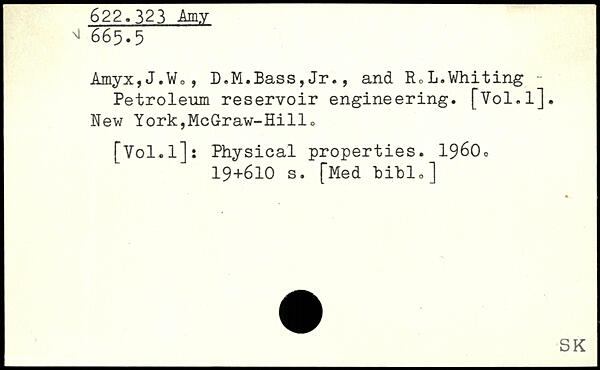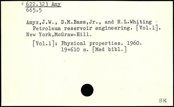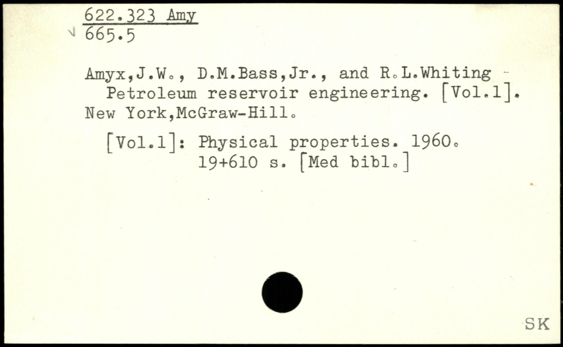 Amyx,J.Wo, D.M.Bass,Jr., and R0L.Whiting Petroleum reservoir engineering.