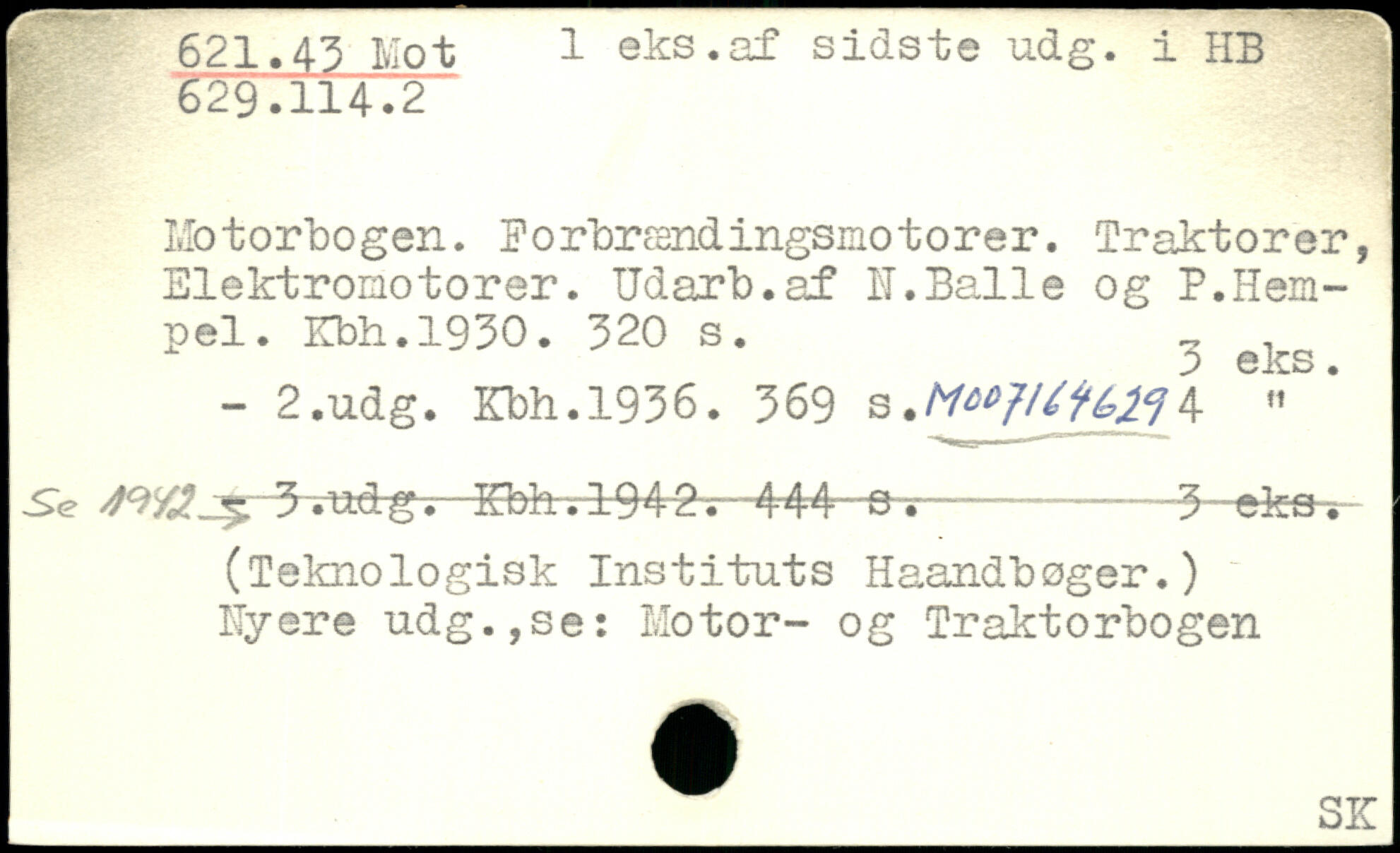 621.43 Mot 1 aks. af sidste ud g. i HB 629.114.2 Motorbogen. Forbrændingsmotorer, traktorer, Elektromotorer. Udaxb.af N.Balle og P.Hem-pel. Kbh.1930.