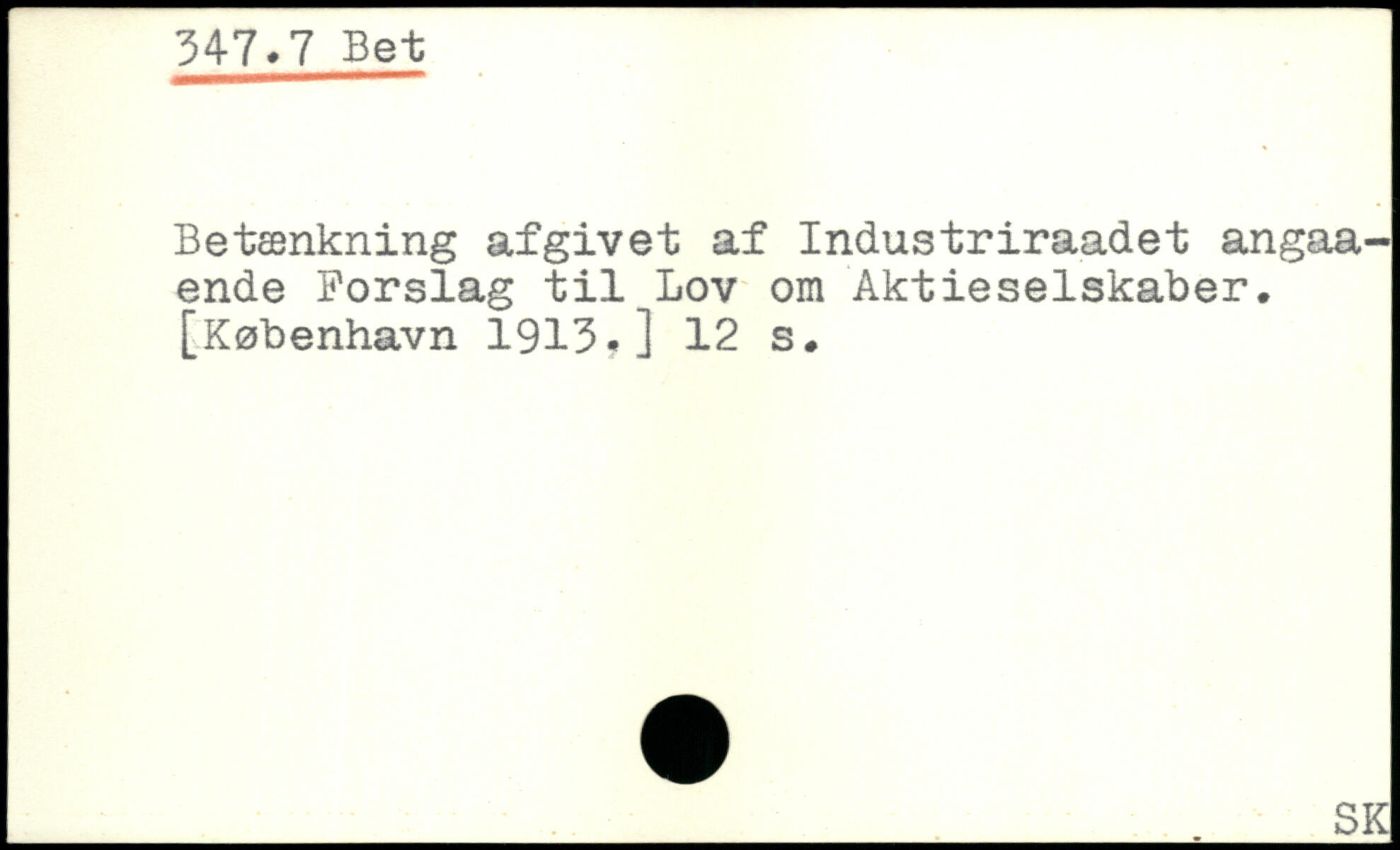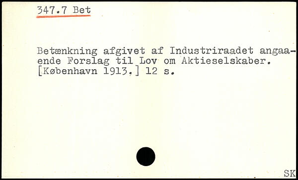 Betænkning afgivet af Industriraadet angaa-ende Forslag til Lov om Aktieselskaber.
