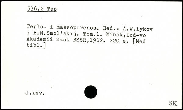 Teplo- i massoperenos. Red.: A.W.Lykov i B.M.Smol'skij. Tom.l.