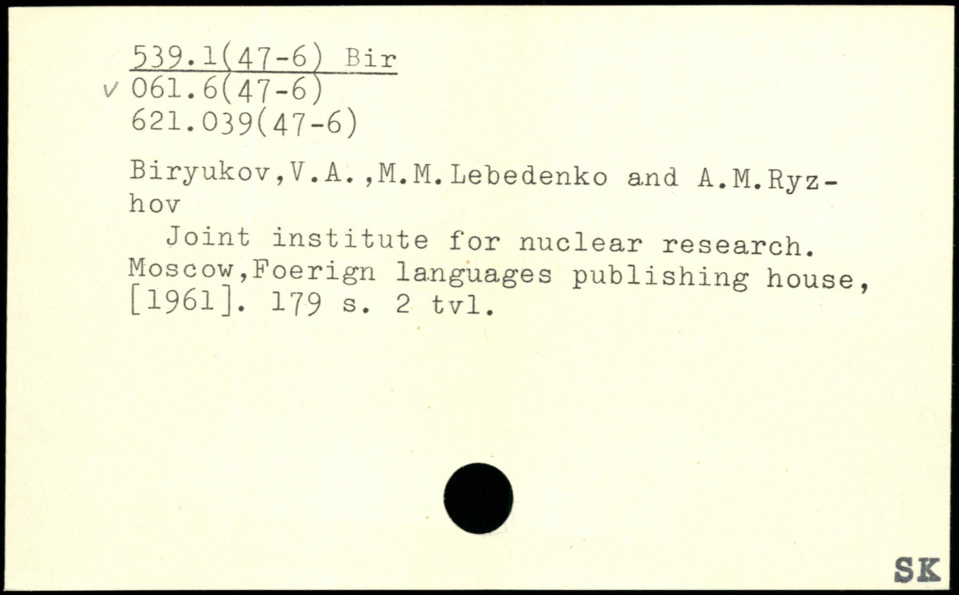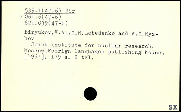 Forfatter: V.A. Biryukov, M.M. Lebedenko