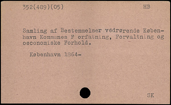 Samling af Bestemmelser vedrørende Køben-havn Kommunes P orfauning, Forvaltning og oeconomiske Forhold