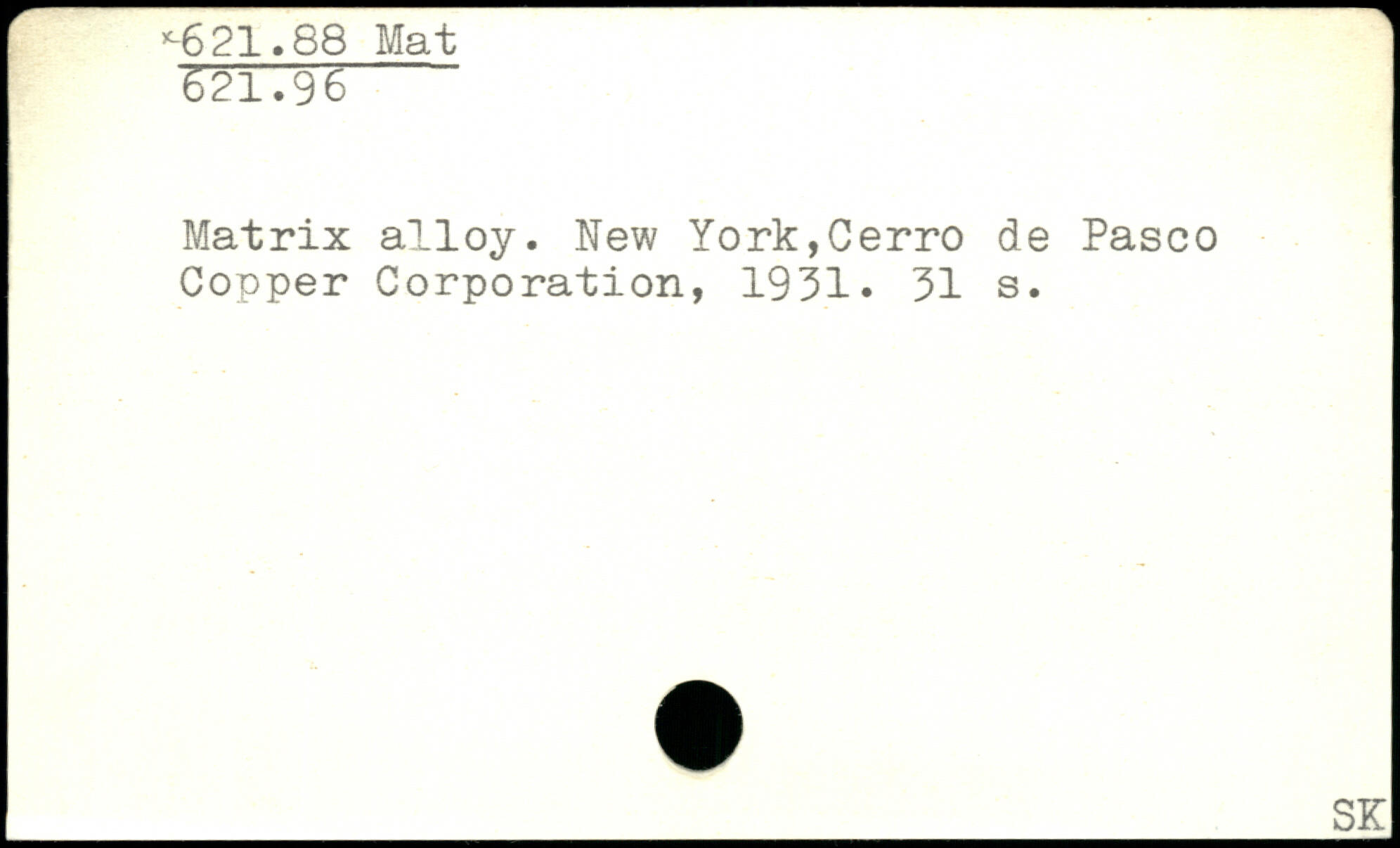 Matrix alloy. New York,Gerro de Pasco Copper Corporation, 1931.