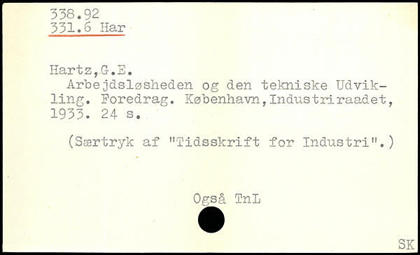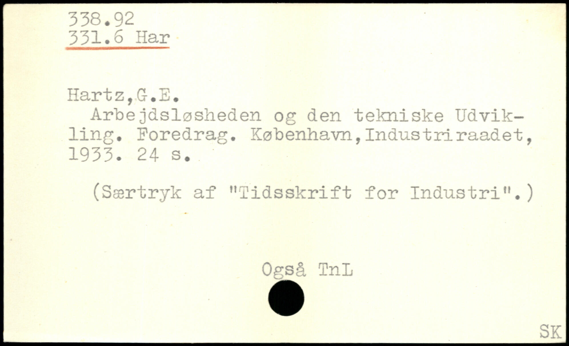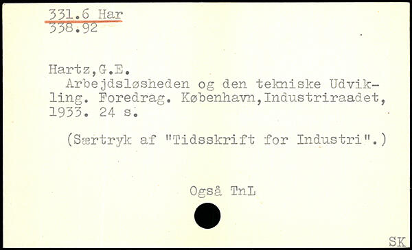 Arbejdsløsheden og den tekniske Udvikling. Poredrag.