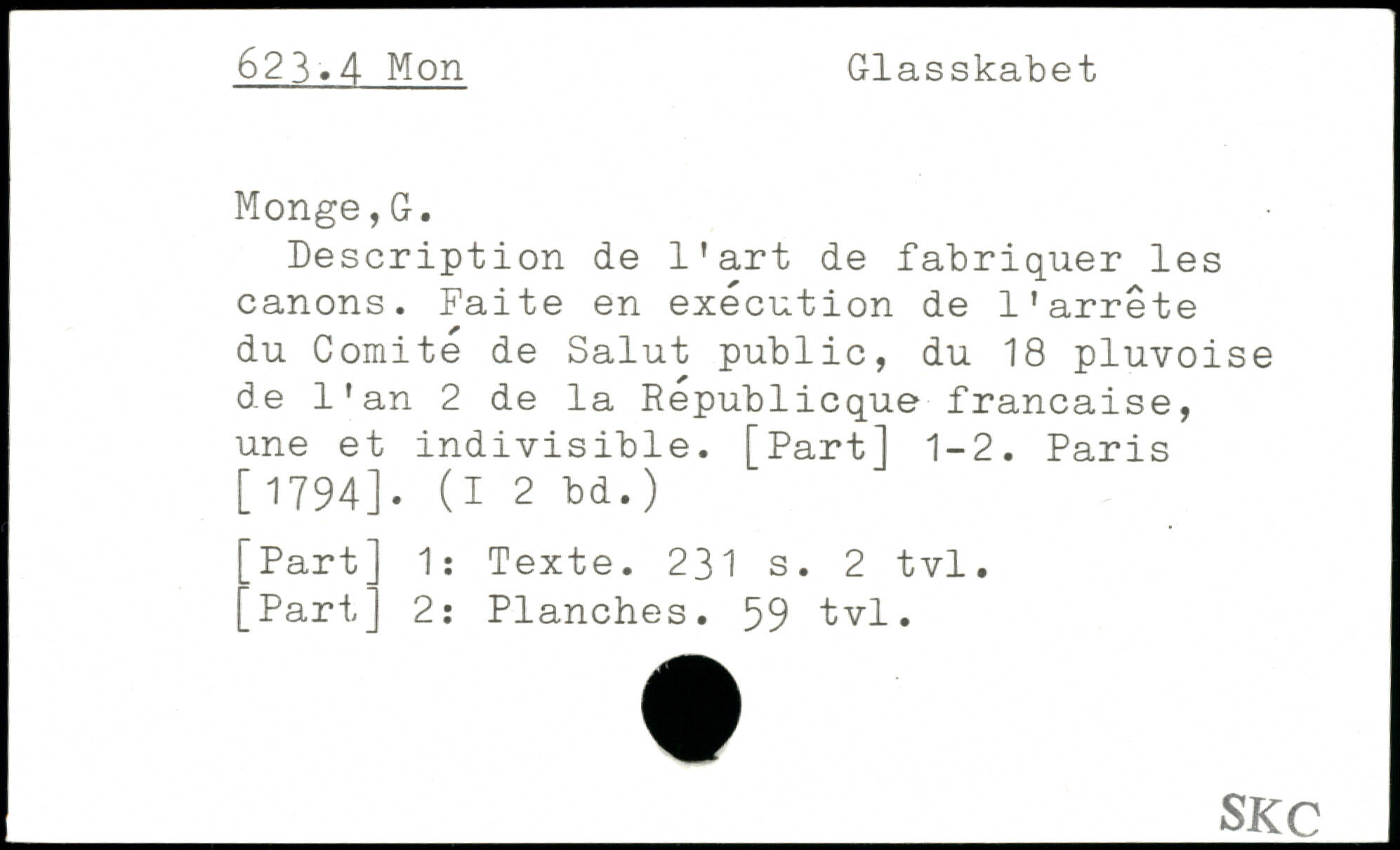 Description de l'art de fabriquer les canons. Faite en exécution de l'arrête du Comité de Salut public, du 18 pluvoise de l'an 2 de la Républicque française, une et indivisible. [Part] 1-2.