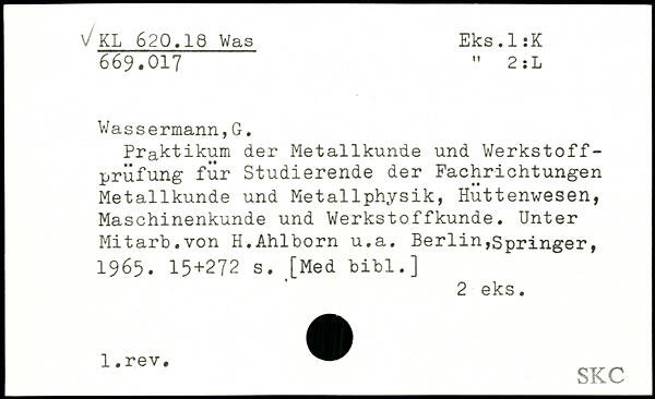 Praktikum der Metallkunde und Werkstoffprüfung für Studierende der Fachrichtungen Metallkunde und Metallphysik, Hüttenwesen, Maschinenkunde und Werkstoffkunde. Unter Mitarb.von H.Ahlborn u.a.