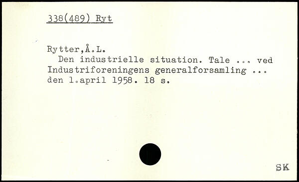Den industrielle situation. Tale ... ved Industriforeningens generalforsamling ... den 1.april 1958