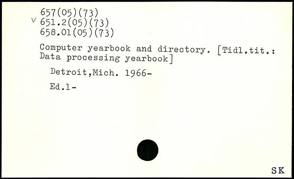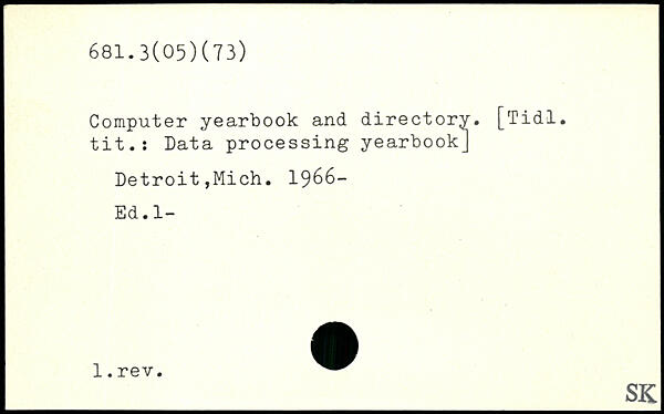 Computer yearbook and directory. [Tidl.tit.: Data processing yearbook] Detroit,Mich. 1966- Ed. 1 -