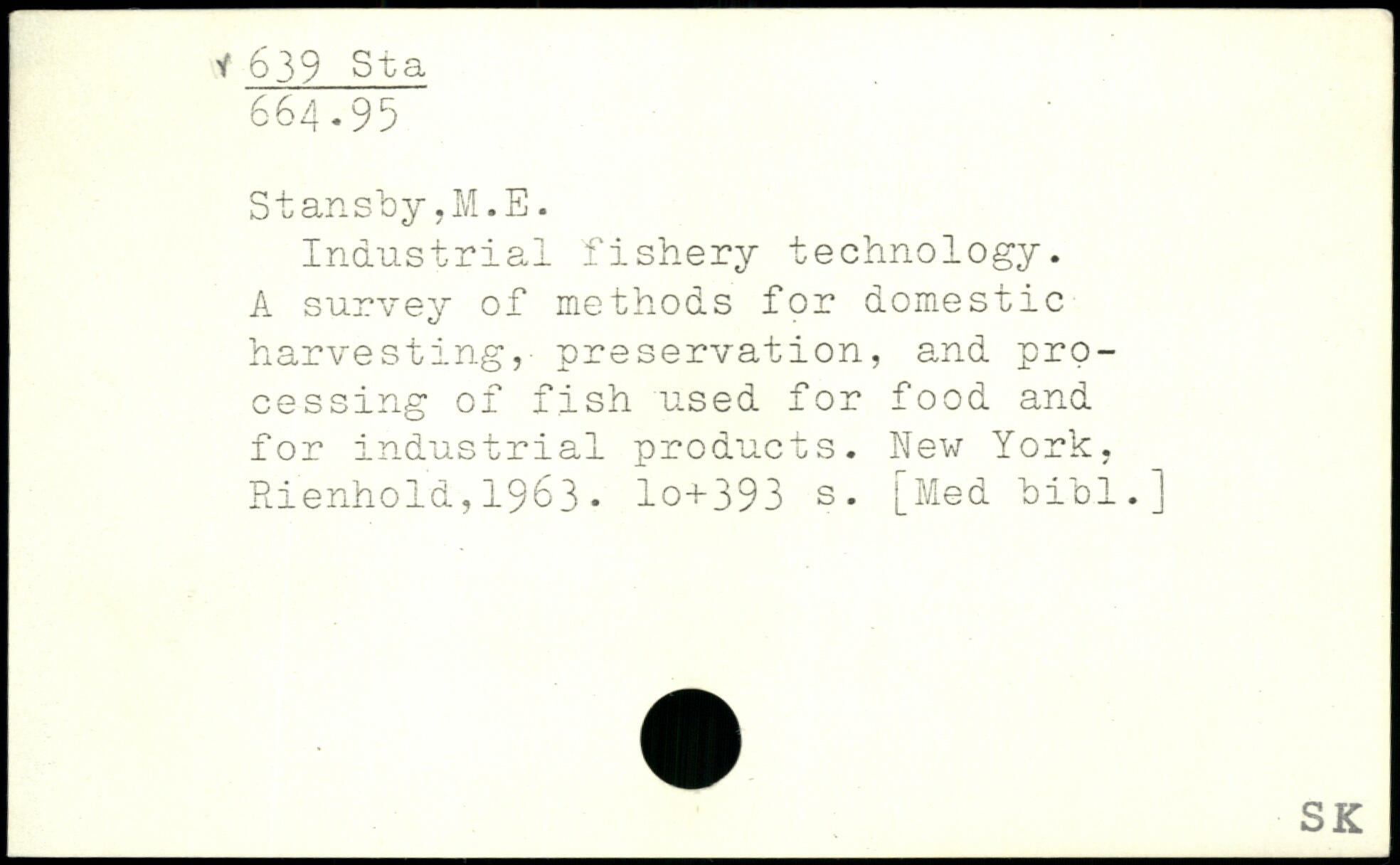 Industrial fishery technology. A survey of methods for domestic harvesting, preservation, and processing of fish used for food and for industrial products, hew