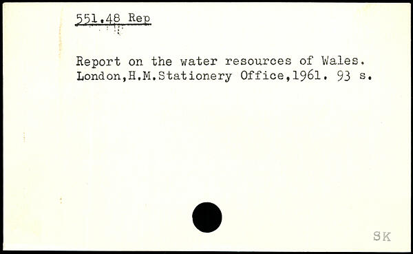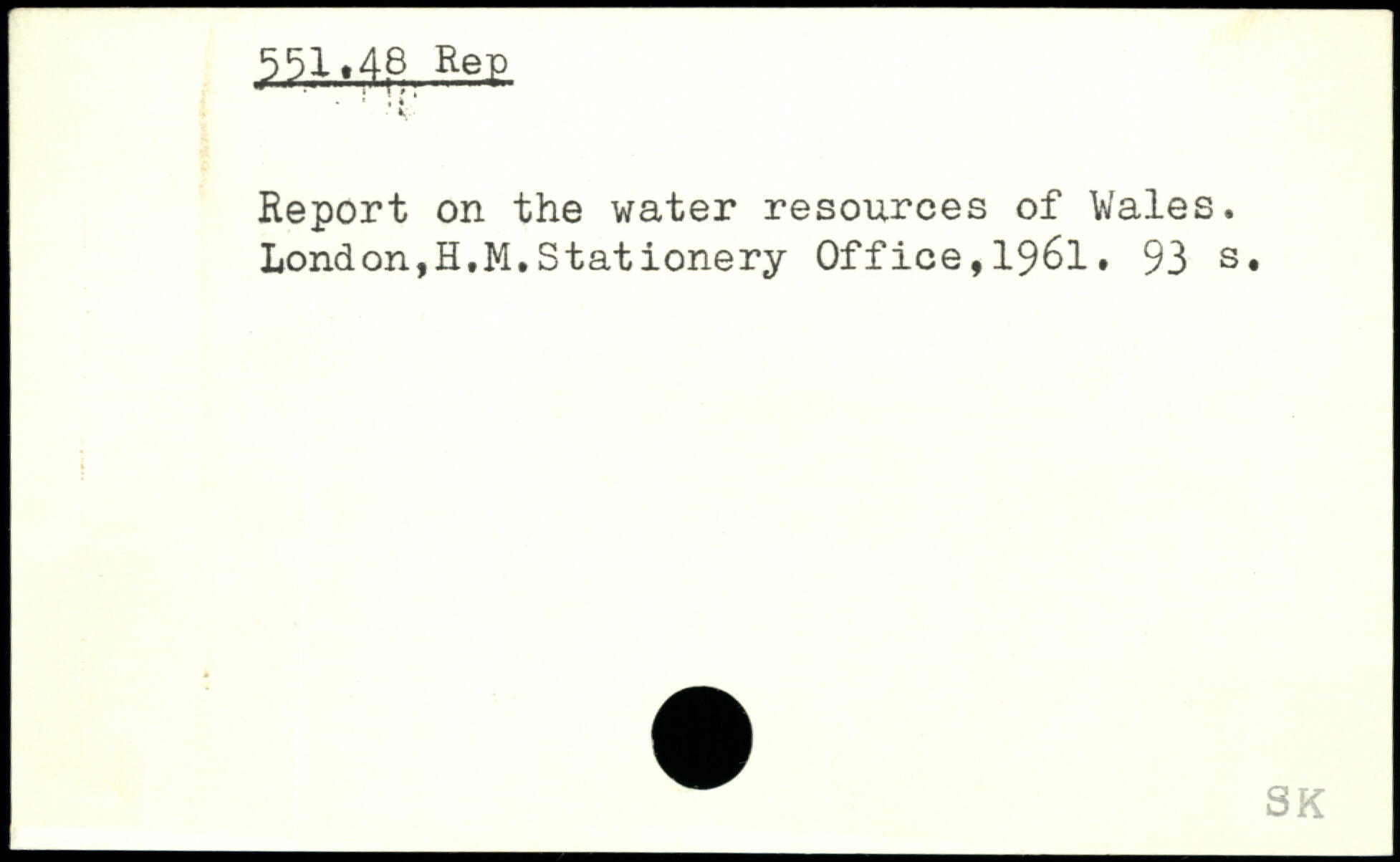 Report on the water resources of Vales. London,H.M.Stationery Office,1961.