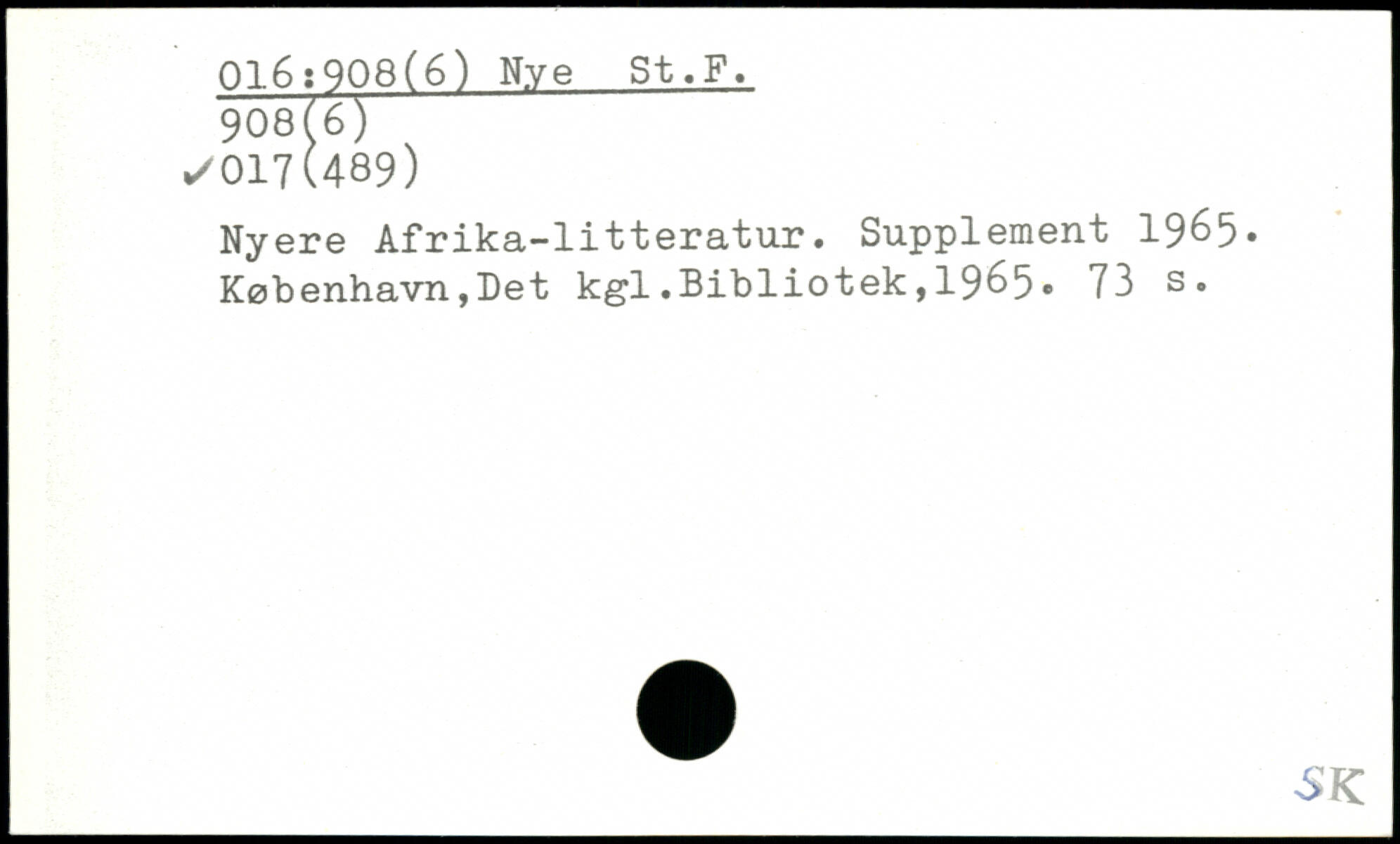Nyere Afrika-litteratur. Supplement 1965, København,Det kgl.Bibliotek,19&5.