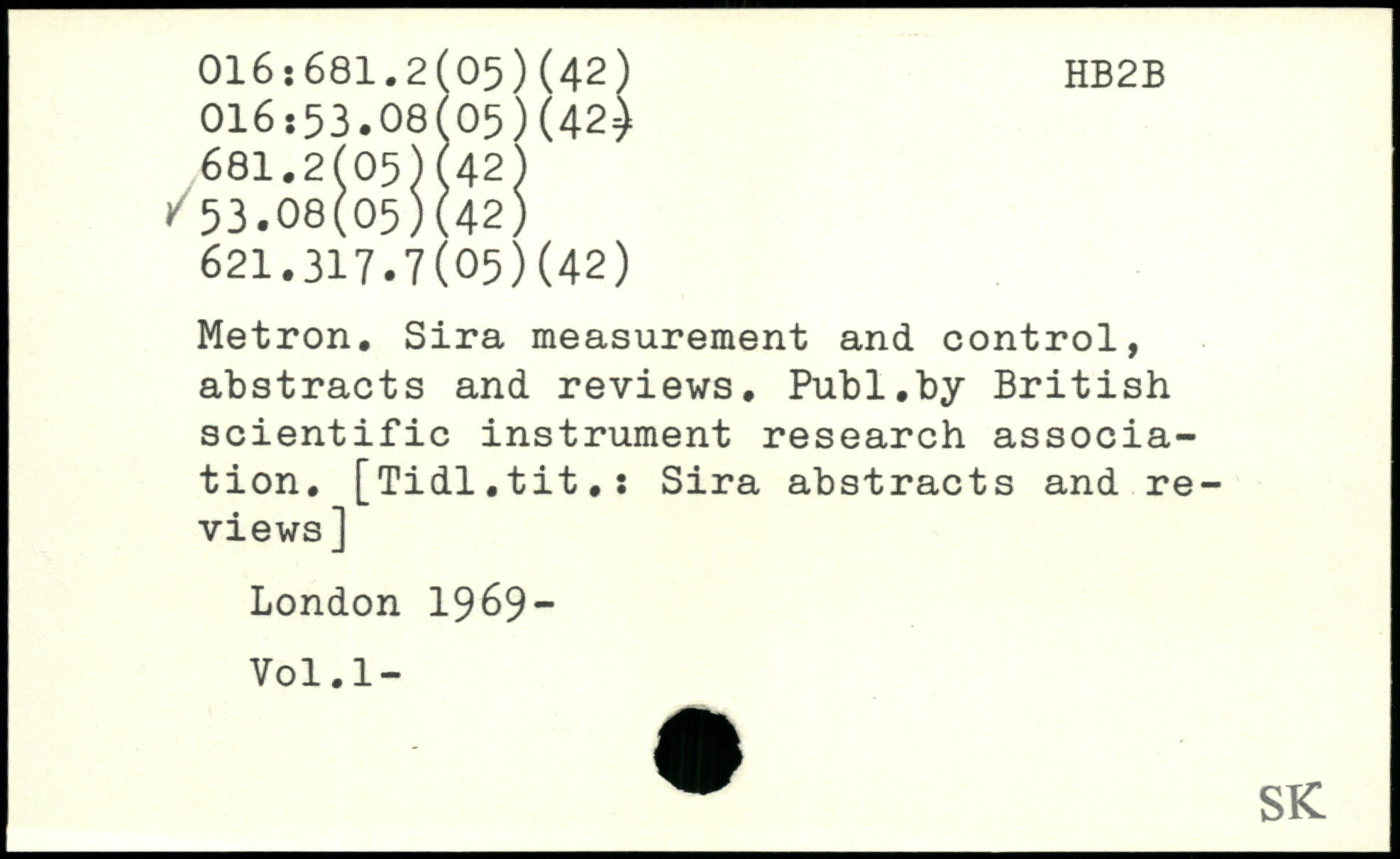 Metron. Sira measurement and control, abstracts and reviews.