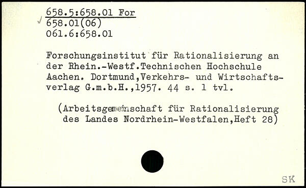 Forschungsinstitut für Rationalisierung an der Rhein.-Westf.Technischen Hochschule Aachen. Dortmund,Verkehrs- und Wirtschaftsverlag G.m.b.H.,1957.
