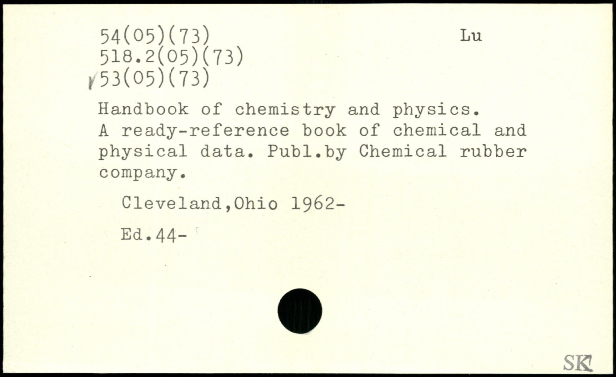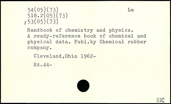 Handbook of chemistry and physics. A ready-reference book of chemical and physical data.