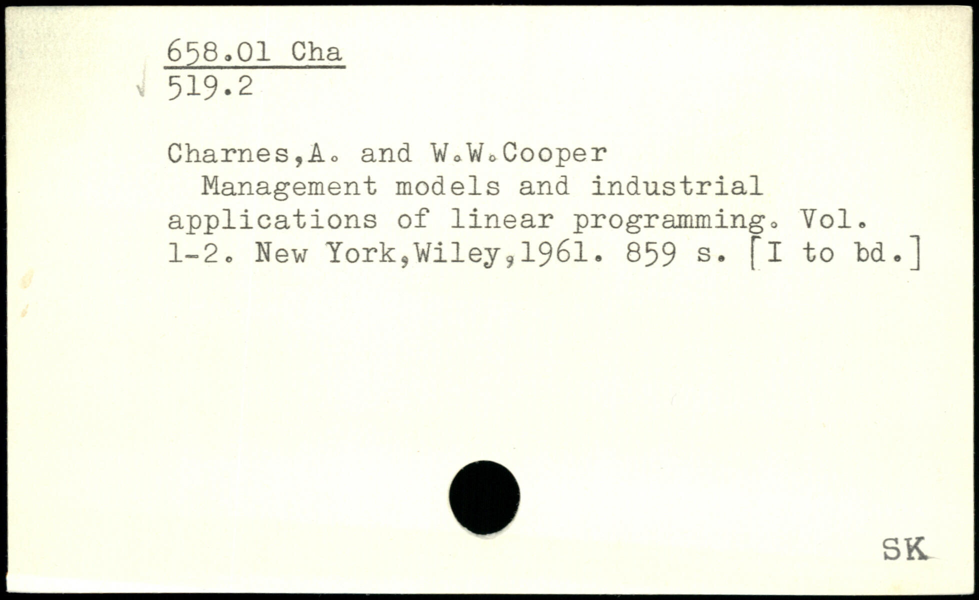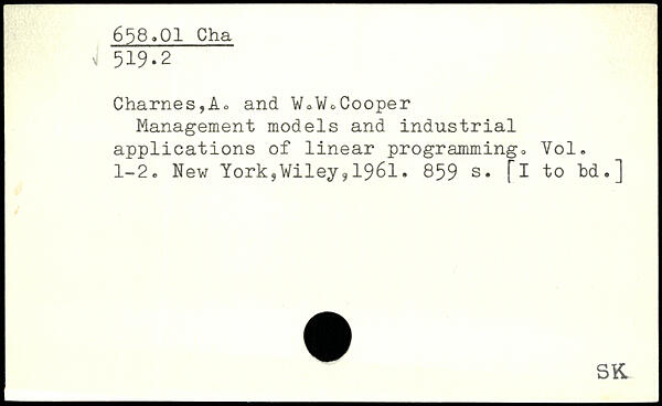 Management models and industrial applications of linear programming. Vol. 1-2. New York,Wiley91961.