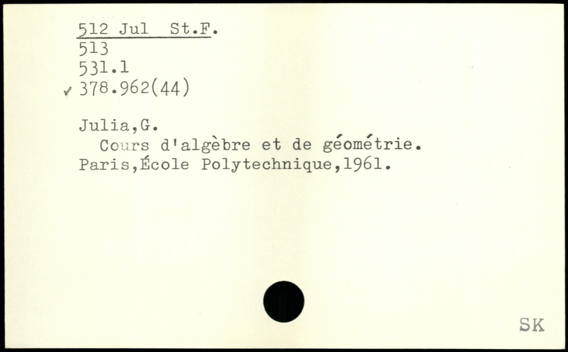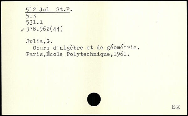 Cours d'algèbre et de géométrie. Paris,École Polytechnique,1961.
