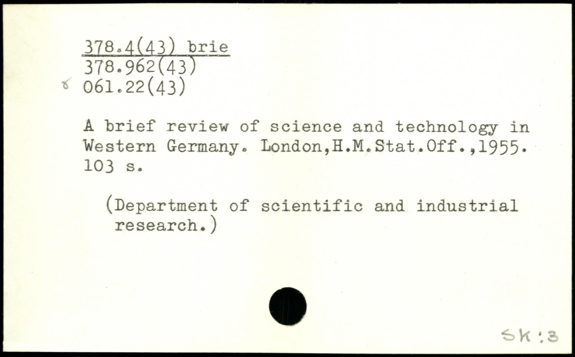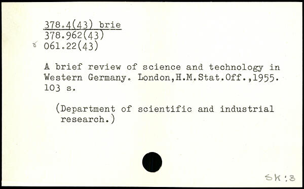 A brief review of science and technology in Western Germany. London,H.M.Stat.Off.,1955