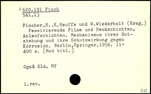 Pa.ssivierende Filme und Deckschichten, Anlaufschichten. Mechanismus ihrer Entstehung und ihre Schutzwirkung gegen Korrosion.
