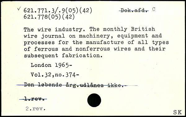 The wire industry. The monthly British wire journal on machinery, equipment and processes for the manufacture of all types of ferrous and nonferrous wires and their subsequent fabrication.