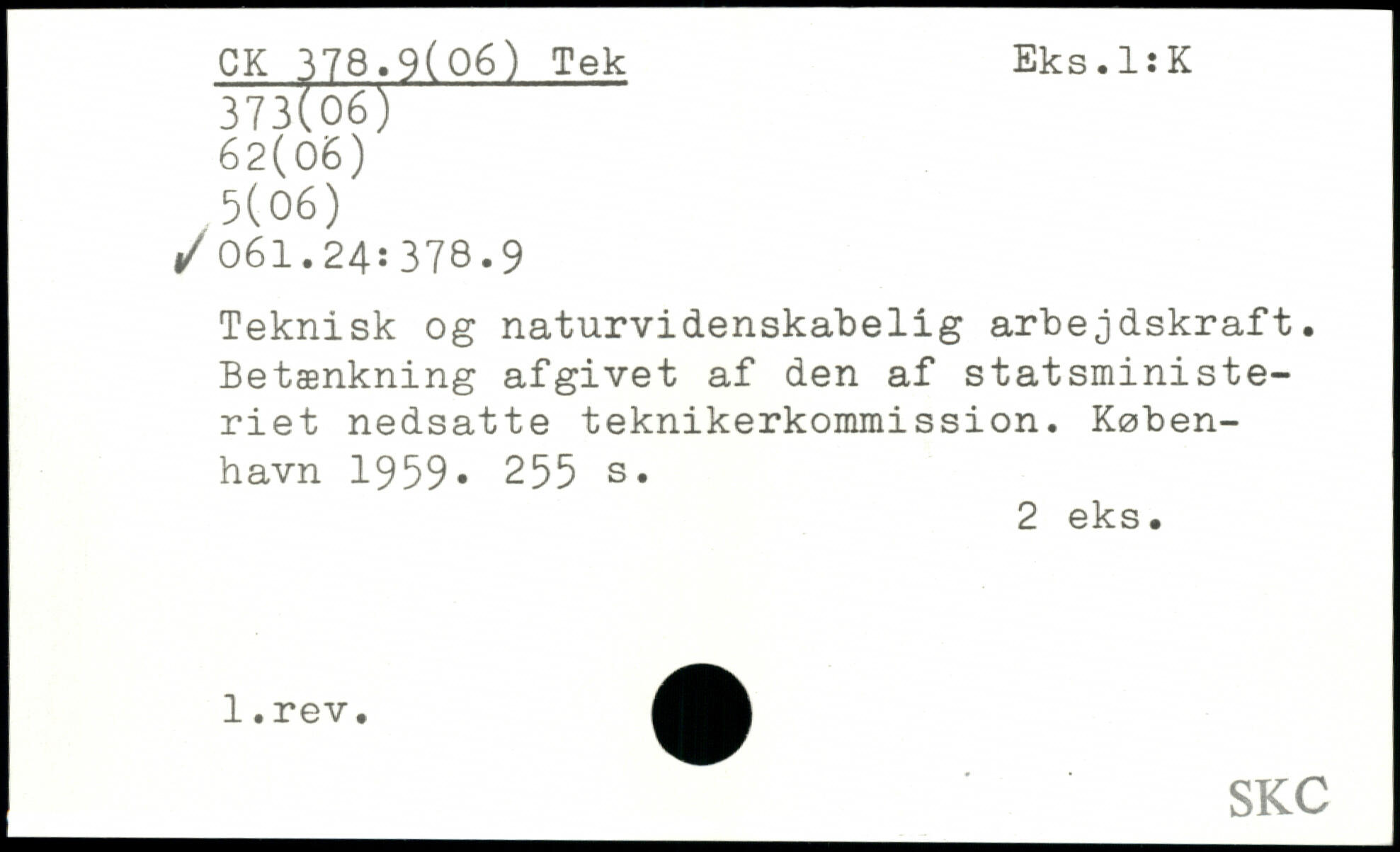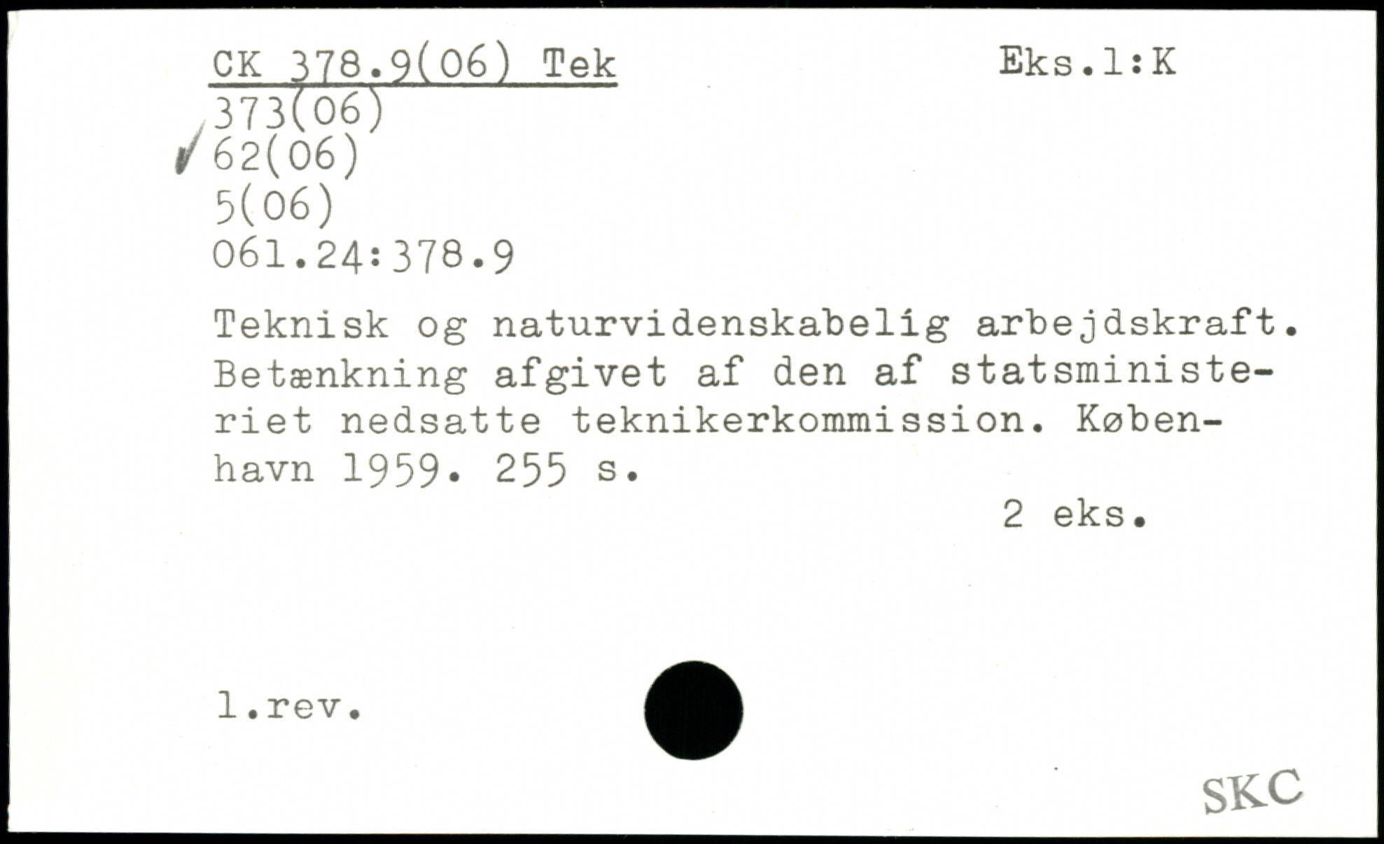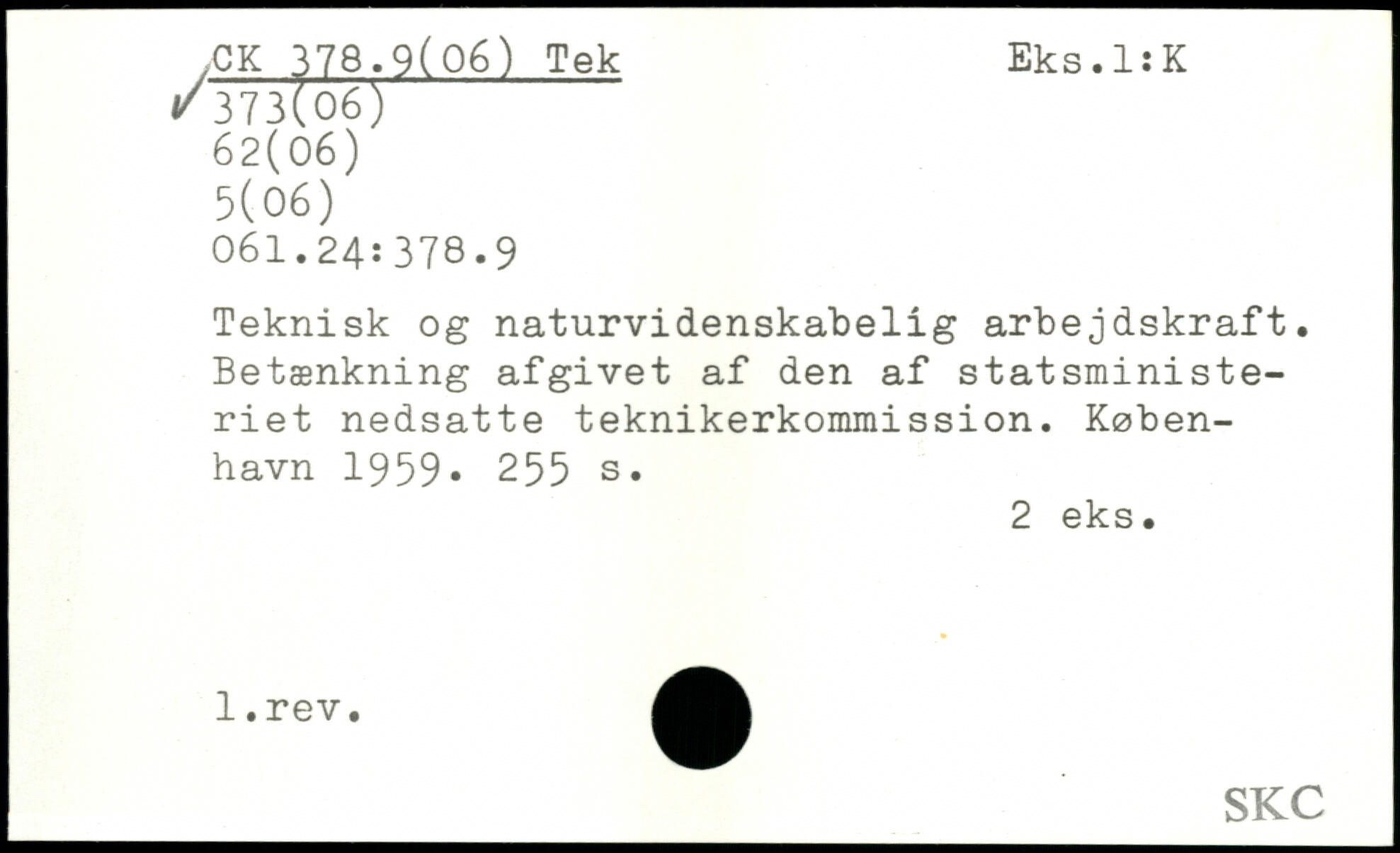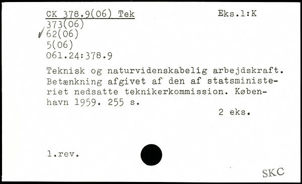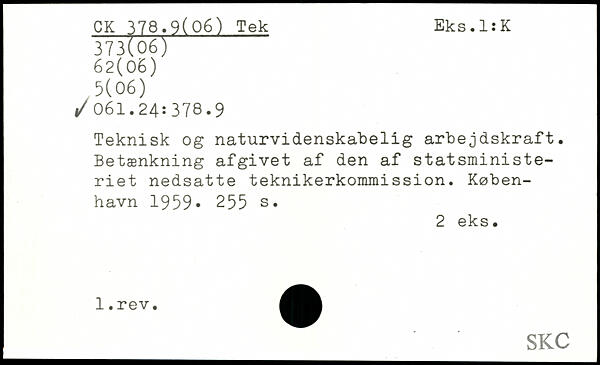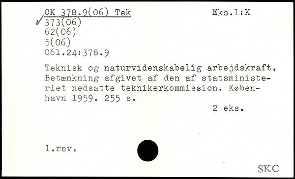 Teknisk og naturvidenskabelig arbejdskraft. Betænkning afgivet af den af statsministeriet nedsatte teknikerkommission.