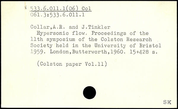 Hypersonic flow. Proceedings of the 11th symposium of the Colston Research Society held in the University of Bristol 1959.