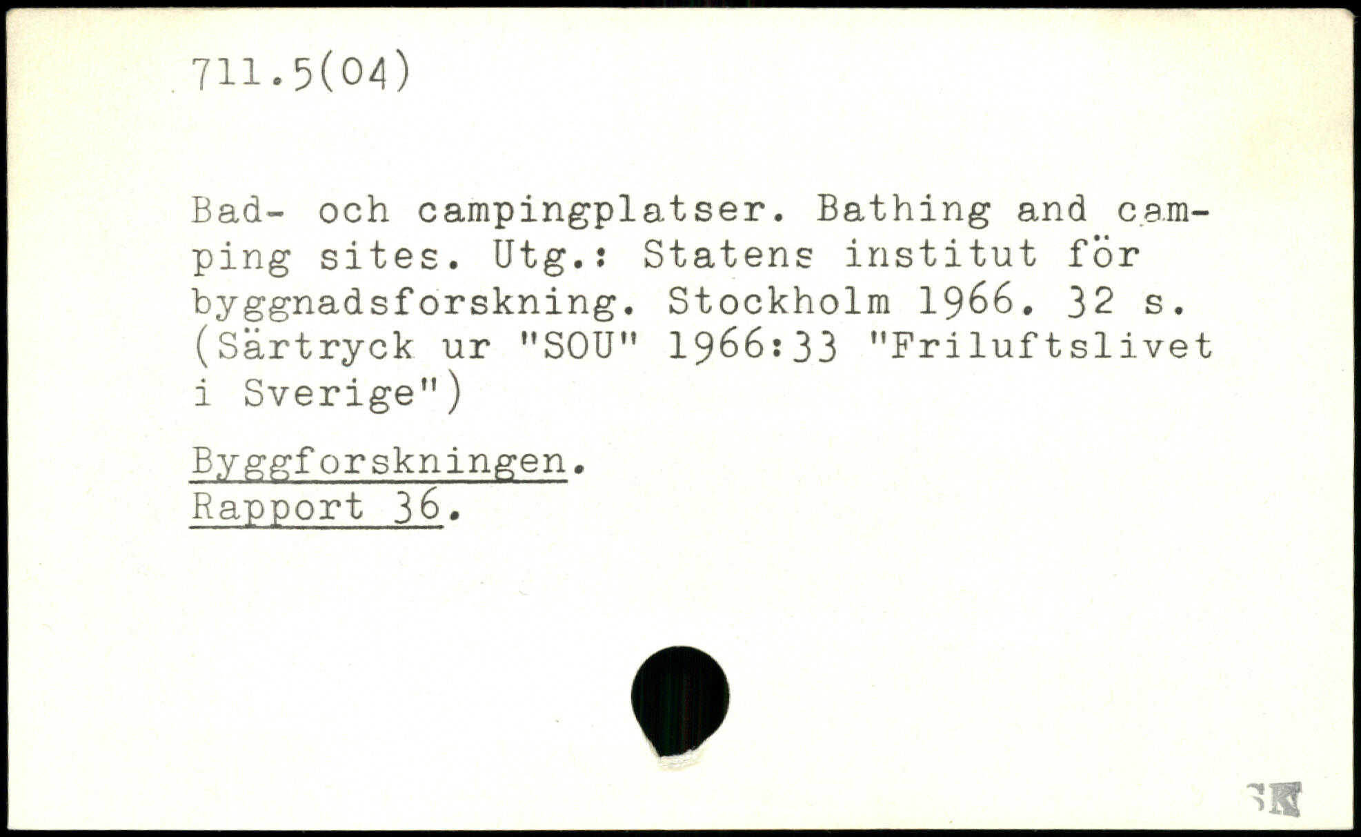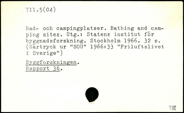 Bad- och campingplatser. Bathing and camping sites. Utg.s Statens institut for byggnadsforskning.