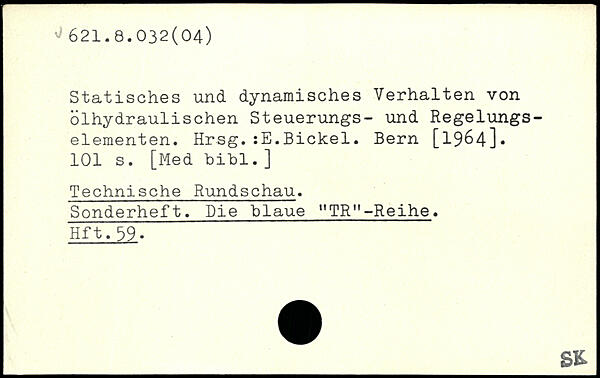 Statisches und dynamisches Verhalten von ölhydraulischen Steuerungs- und Regelungselementen. Hrsg.sE.Bickel.