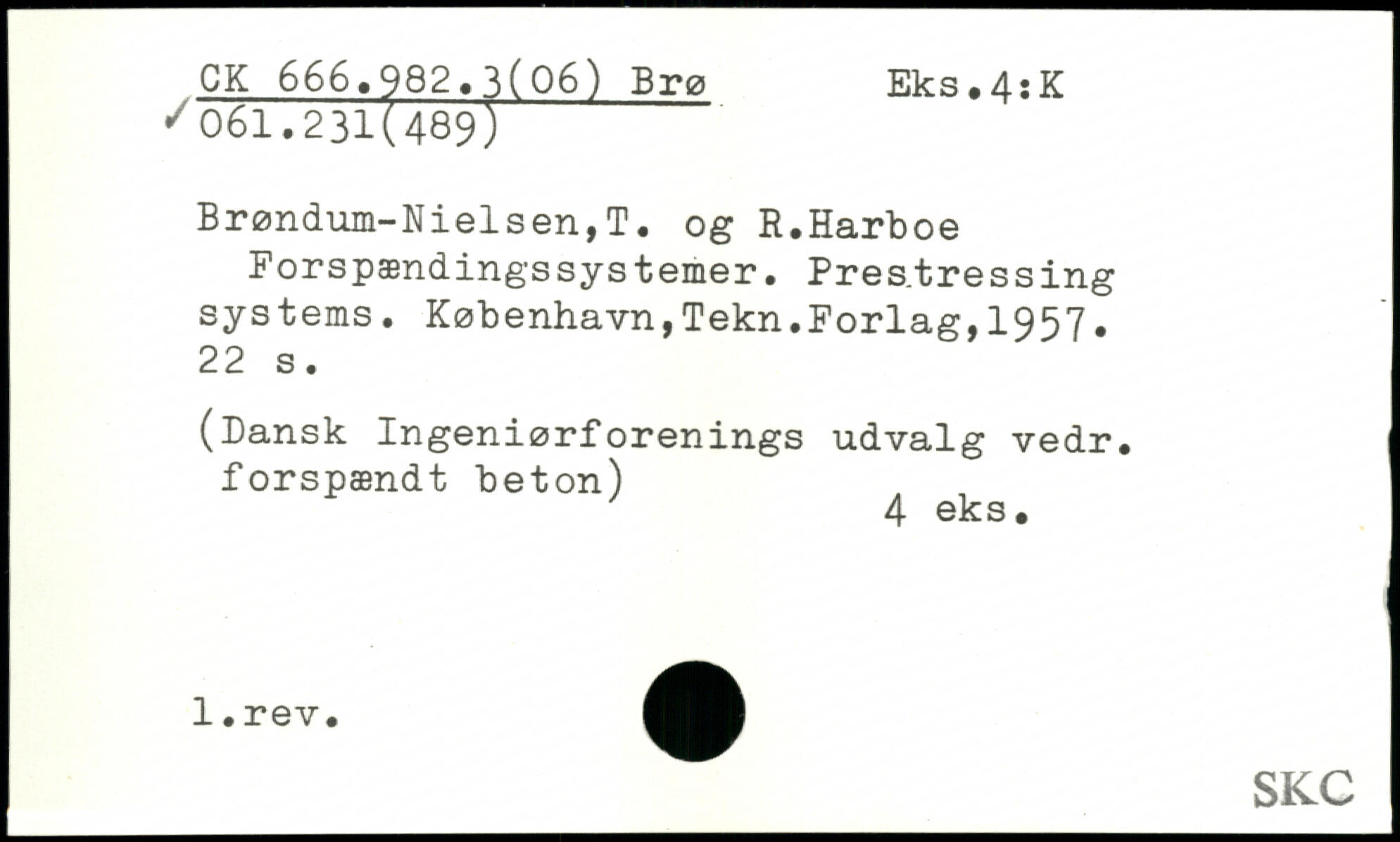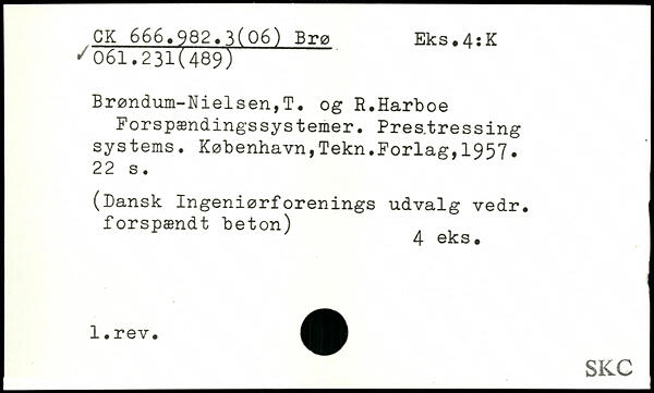 Forspændingssystemer. Pres.tressing systems. København,Tekn.Forlag,1957.