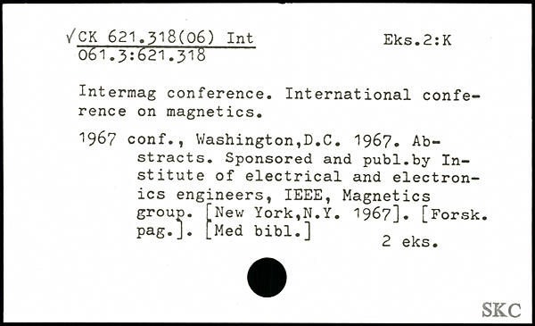 Intermag conference. International conference on magnetics. 1967 conf., Washington,D.C. 1967. Abstracts. Sponsored and publ.by Institute of electrical and electronics engineers, IEEE, Magnetics group.