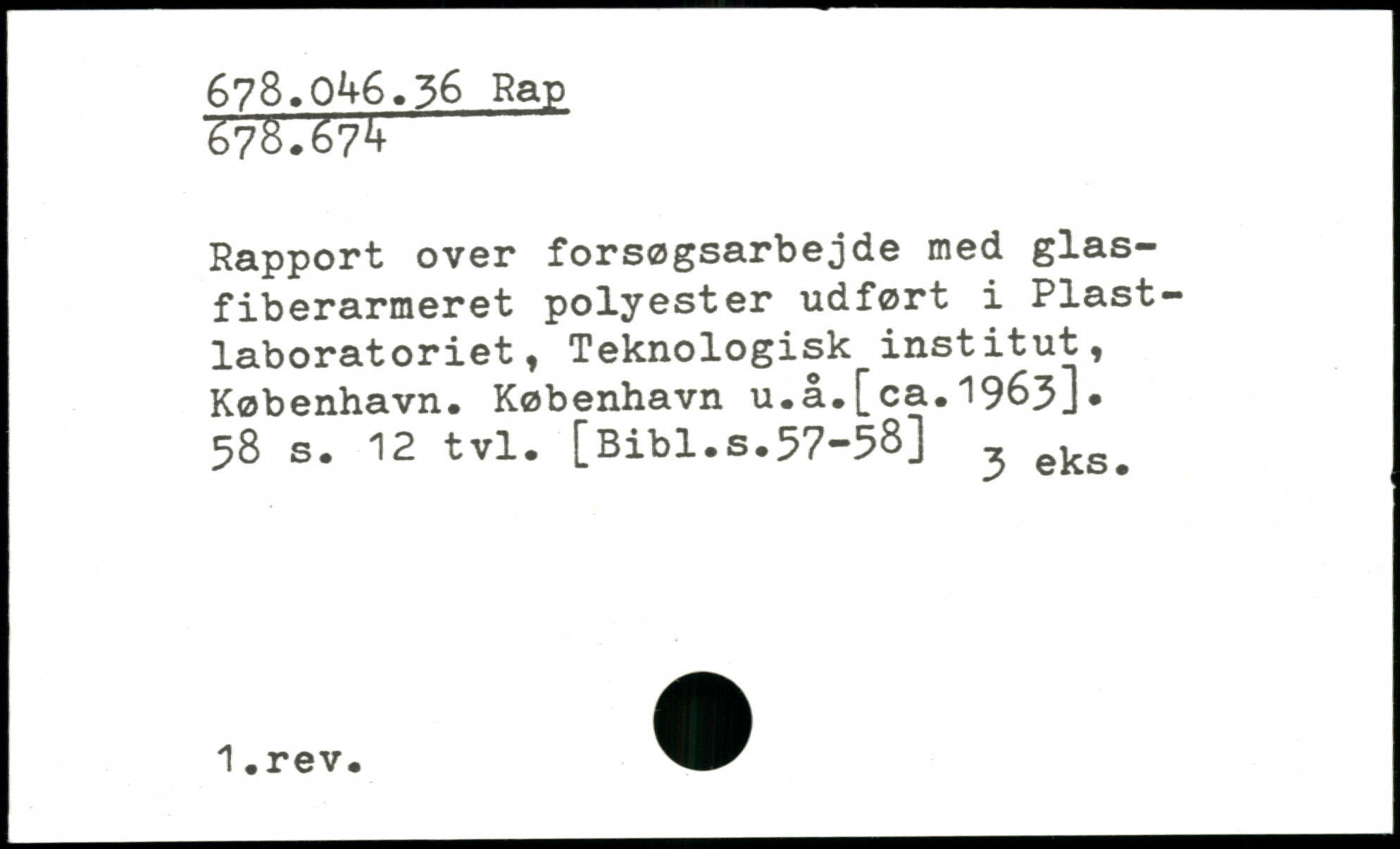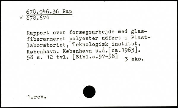 Rapport over forsøgsarbejde med glasfiberarmeret polyester udført i Plastlaboratoriet, Teknologisk institut, København. København u.å.[ca.1963].