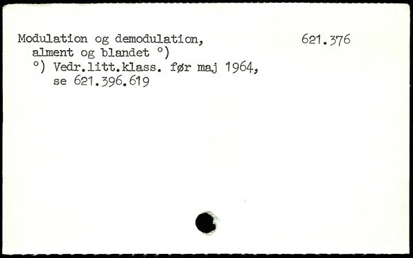 Modulation og demodulation, 621.376 alment og "blandet .) .) Vedr.litt.klass. før maj 1964. se 621.396.619