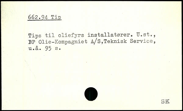 Tips til oliefyrs installatører. U.st., BP Olie-Kompagniet å/s,Teknisk Service
